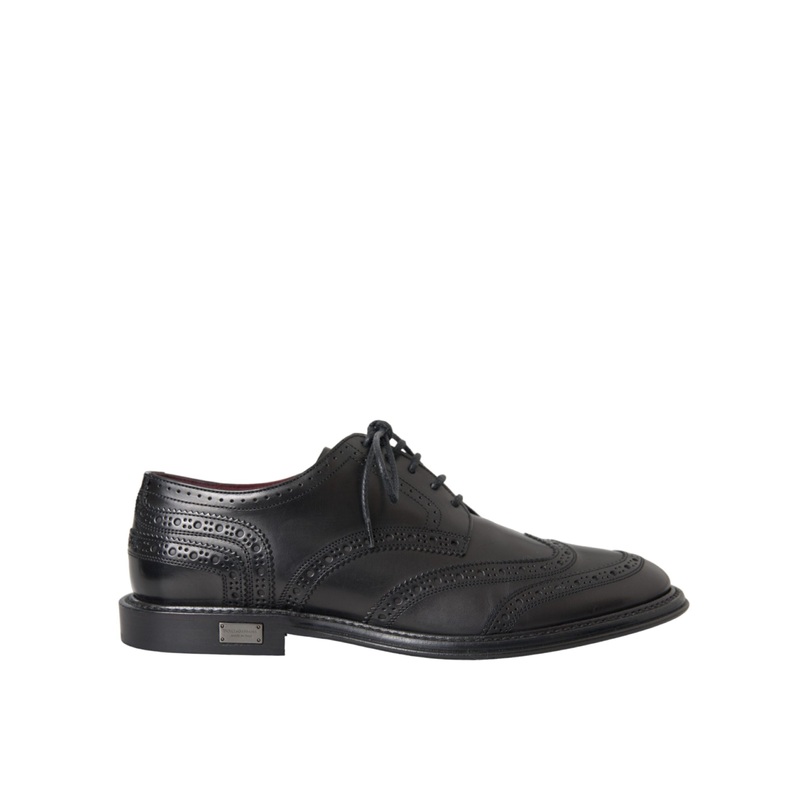 Dolce & Gabbana Black Leather Oxford Wingtip Formal Men Shoes