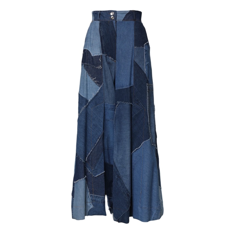 Dolce & Gabbana Blue Denim Long Maxi Patchwork Cotton Skirt
