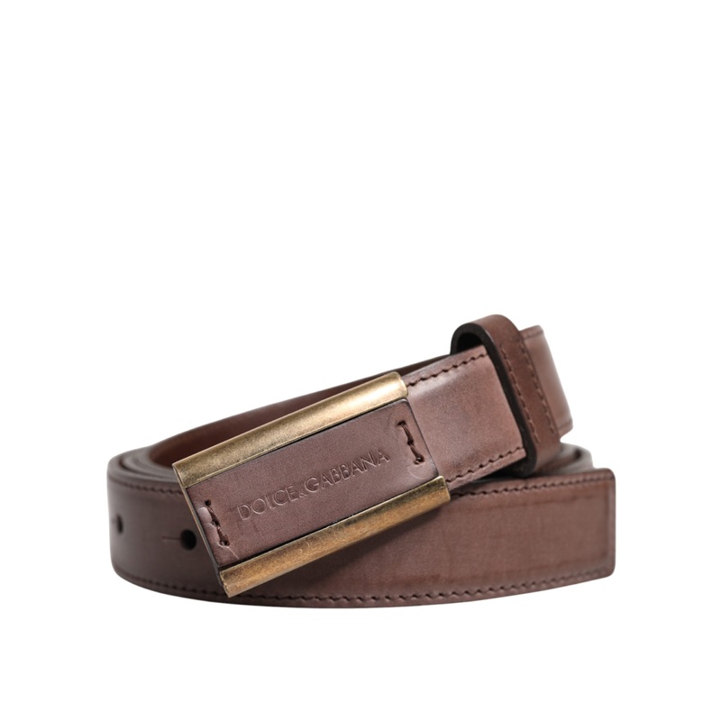 Dolce & Gabbana Brown Calf Leather Antique Buckle Belt
