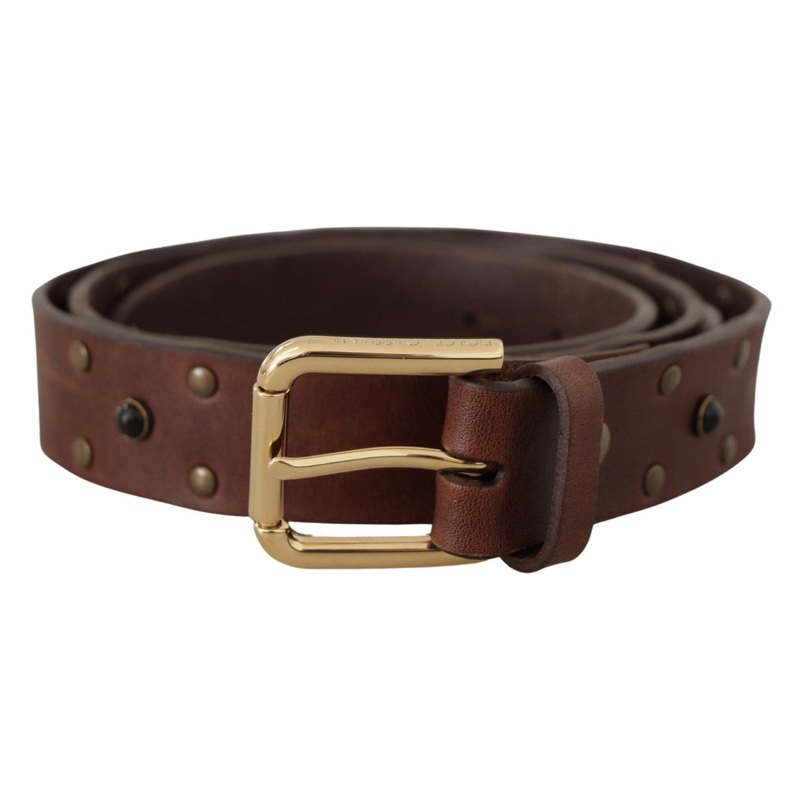 Dolce & Gabbana Brown Leather Studded Gold Tone Metal Buckle Belt