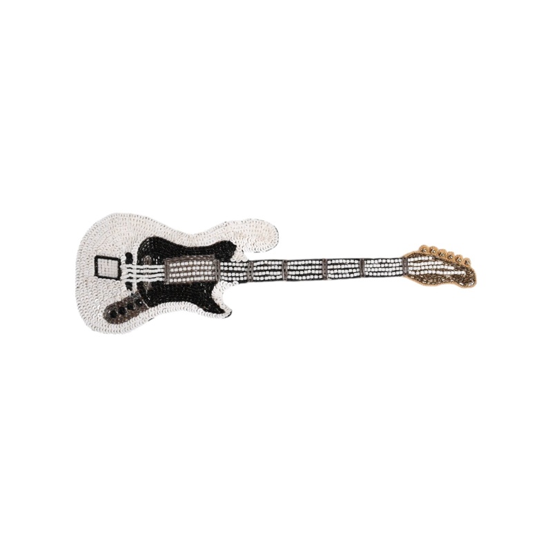 DOLCE & GABBANAGorgeous brand new, 100% Authentic Dolce & Gabbana gold plated brass brooch.Model: Guitar Pin BroochColor: Gold and whiteMaterial: 40% Polyester 30% Real Brass 30% GlassSIZE: 17cmSequined and beaded detailingMade in ItalyLogo details