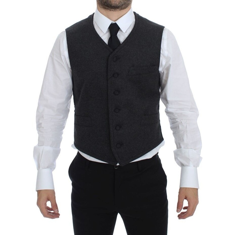 Dolce & Gabbana VestAbsolutely stunning, 100% Authentic, brand new with tags Dolce & Gabbana Gray wool blend Dress Vest. This item comes from the MainLine Dolce & Gabbana collection.Modell: Single breastedStrap: Adjustable back waist strapColor: GrayFull f