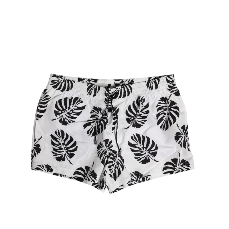 Dolce & Gabbana White Black Print Beachwear Shorts Swimwear