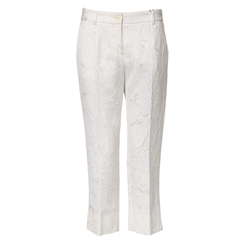 DOLCE & GABBANAGorgeous brand new, 100% Authentic Dolce & Gabbana mid waisted floral jacquard pants.Model: Cropped pantsFit: RegularColor: WhiteMaterial: 50% Cotton 49% Viscose 1% ElastaneZipper closureLogo detailsMade in ItalyVery exclusive and high craft