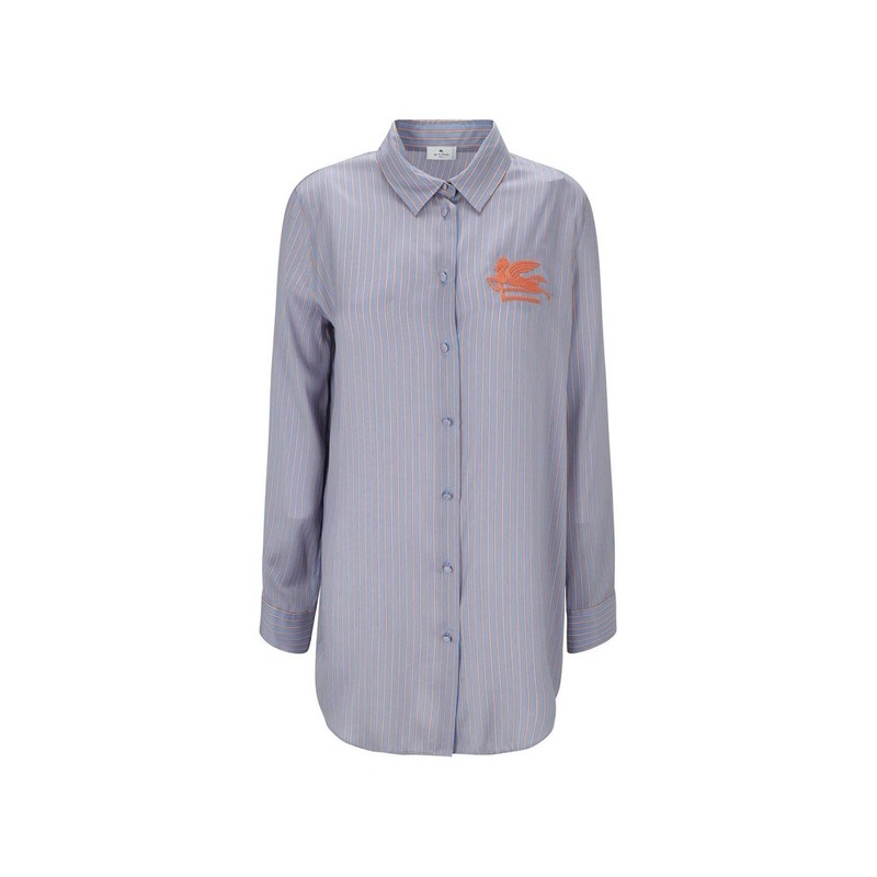 Description: Composition: 100% Silk Long sleeves Embroidered logo detail The model is 176 cm high wearing size: 40 Shirt collar Made in Italy Gender: WOMEN