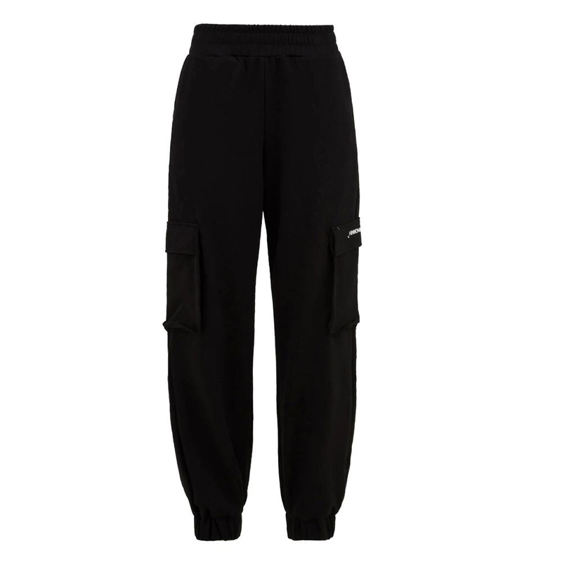 Hinnominate, black-colored stretch long pants with drawstring and side pockets.