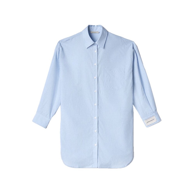 Hinnominate light blue cotton chemisier with white stripes, chest pocket with diagonal stripes