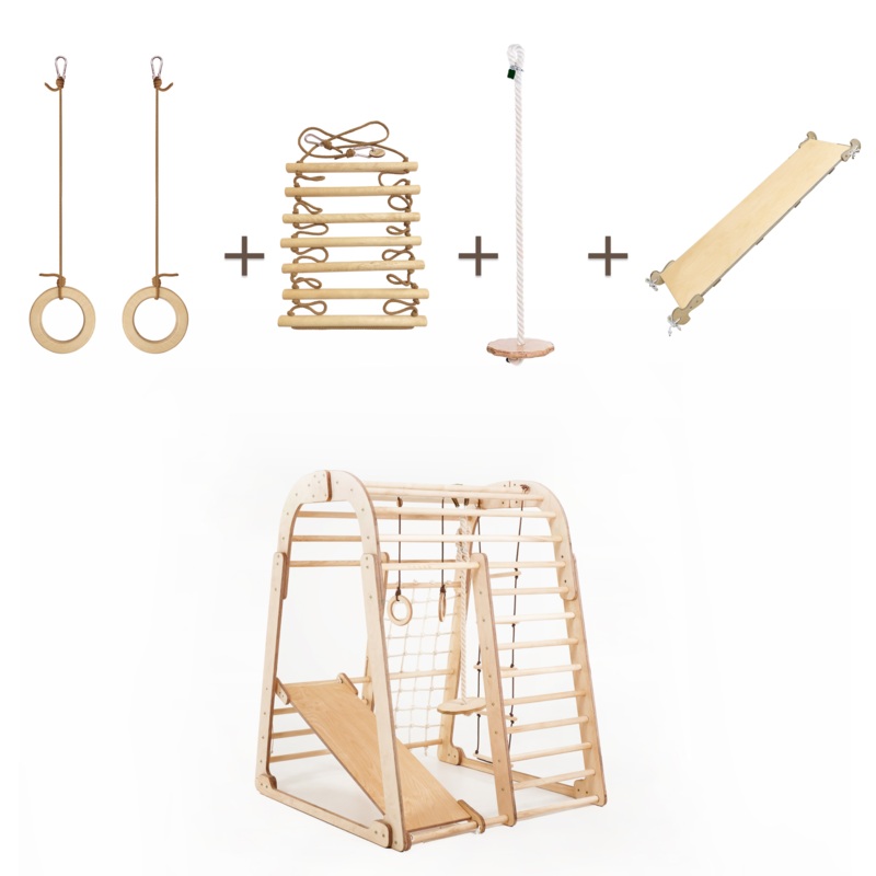 Meet the Kids Playground – an amazing, multi-functional Montessori-style climbing structure designed to engage, entertain, and develop your little ones! Inspired by the Montessori method, our Kids Playground encourages children aged 3 to 8 years old to explore and develop essential skills like balance, coordination, and motor skills, all while having loads of fun.