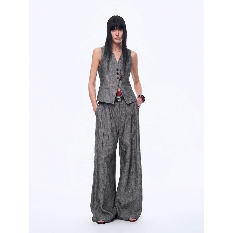 The straight-cut vest is easy to wear and match, and it is capable without losing the retro taste. The straight-leg trousers are integrated with a variety of double-pleat designs to make them more fashionable and capable. The classic version is tailored to take into account both formal and casual feelings, and can be freely switched to match different identities and roles.