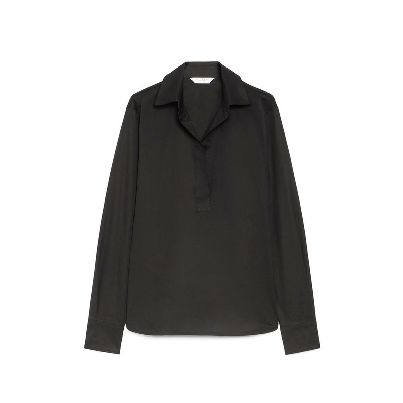 Description: Composition: 100% Cotton Long sleeves V-neckline Button cuffs Rounded hem with side slits Straight-cut Loose silhouette Open polo-shirt collar Made in Italy Gender: WOMEN Size & Fit:The model wears size 42.