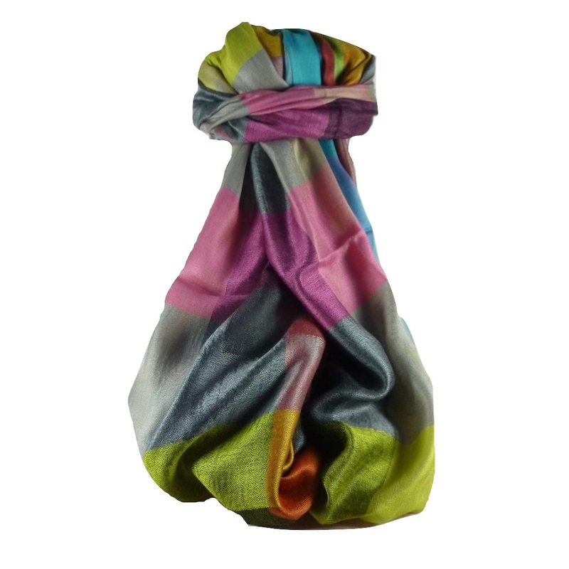 East meets west. Our sumptuous mens premium silk scarf reflects the very strong French influence in the city, especially in the old quarters where artisans using the traditional weaving skills thrive. The towns Rues and Boulevards are lined with Mediterranean style houses and bakeries, although the city also remains essentially Indian. Pondicherry was ruled by France until 1954 and has a unique and intriguing mix of Franco-Indian culture, which is reflected in the design, and traditional colours of this elegant stole. Each stole has a complementary mix of colours creating an attractive unique geometric pattern.