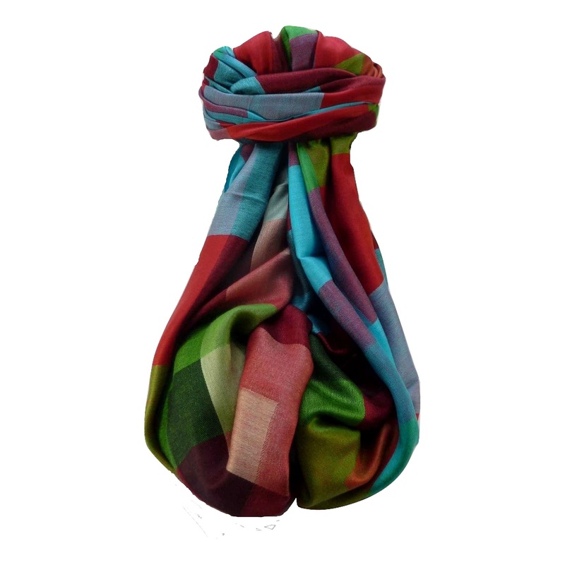 East meets west. Our sumptuous mens premium silk scarf reflects the very strong French influence in the city, especially in the old quarters where artisans using the traditional weaving skills thrive. The towns Rues and Boulevards are lined with Mediterranean style houses and bakeries, although the city also remains essentially Indian. Pondicherry was ruled by France until 1954 and has a unique and intriguing mix of Franco-Indian culture, which is reflected in the design, and traditional colours of this elegant stole. Each stole has a complementary mix of colours creating an attractive unique geometric pattern.