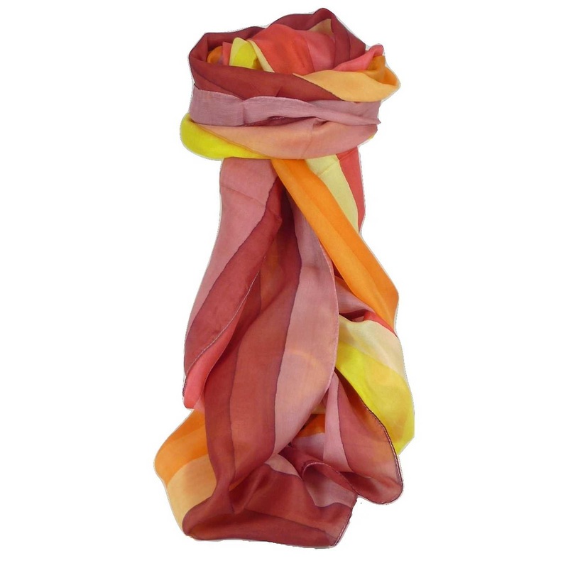 Description This 100% mulberry silk long scarf measuring 170 cm x 45 cm has an unusual design and is individually hand dyed and crafted by cottage industries in Kashmir. The design pays homage to India's most famous painters and the vibrant colour palettes
