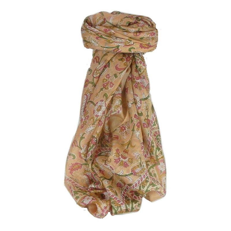 Elegant 100% prime quality silk scarves from our Classic Range measure 100 cm x 100 cm for our square scarves. Our scarves are spun, woven and hand printed by cottage industries in Kashmir. This classic, elegant scarf represents a chic interpretation of traditional Kashmir craftsmanship. Made from cultivated mulberry silk it is the finest and most expensive silk available. It is softer, rounder, finer and smoother than raw silk harvested from the wild. Our Classic Range silk scarves have a smooth, silky, luxurious feel. These elegant scarves are designed and made exclusively for Pashmina & Silk. You will not find them under any other brand. This classic accessory complements all formal or casual wear and its stylish design has a natural look making it a very versatile accessory.