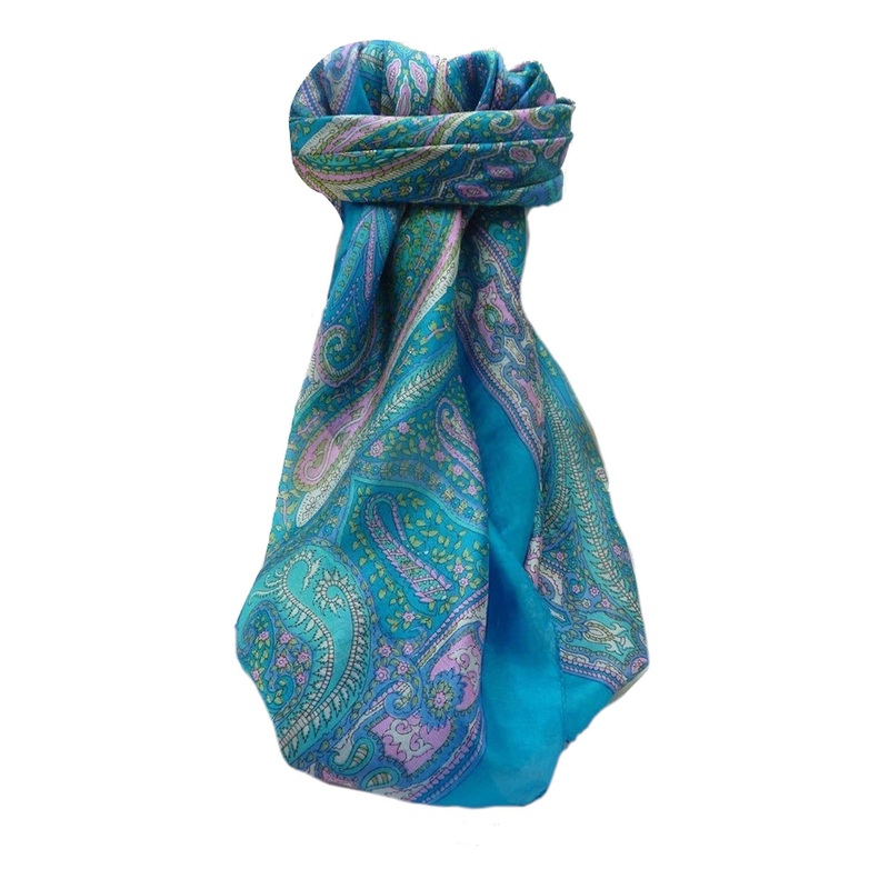 Mulberry Silk Traditional Square Scarf Devan Aqua by Pashmina & Silk | Fruugo SG