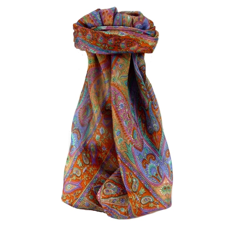 Mulberry Silk Traditional Square Scarf Keshar Tangerine by Pashmina & Silk | Fruugo SG