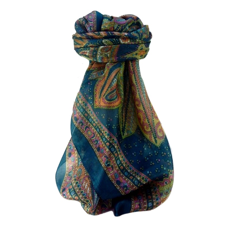 Mulberry Silk Traditional Square Scarf Nanda Teal by Pashmina & Silk | Fruugo SG
