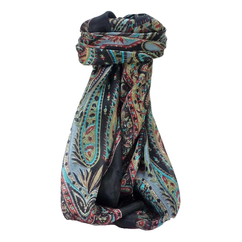 Mulberry Silk Traditional Square Scarf Zayd Black by Pashmina & Silk | Fruugo SG