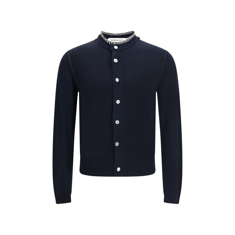 Namachekos cotton Cardigan reinterprets a wardrobe classic with refined details and a modern aesthetic. Featuring a front button closure, it features a ribbed crew neck embellished with contrast stitching that enhances its construction. Ribbed cuffs and he