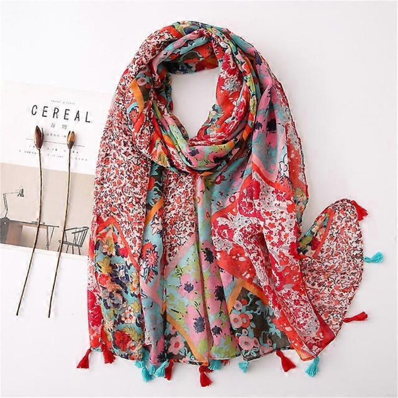 New Vintage Luxury Women Scarf Flower Print Hijab Store Shawls and Wraps Long Tassel Female Foulard Pashmina Bandana foulard | Fruugo SG
