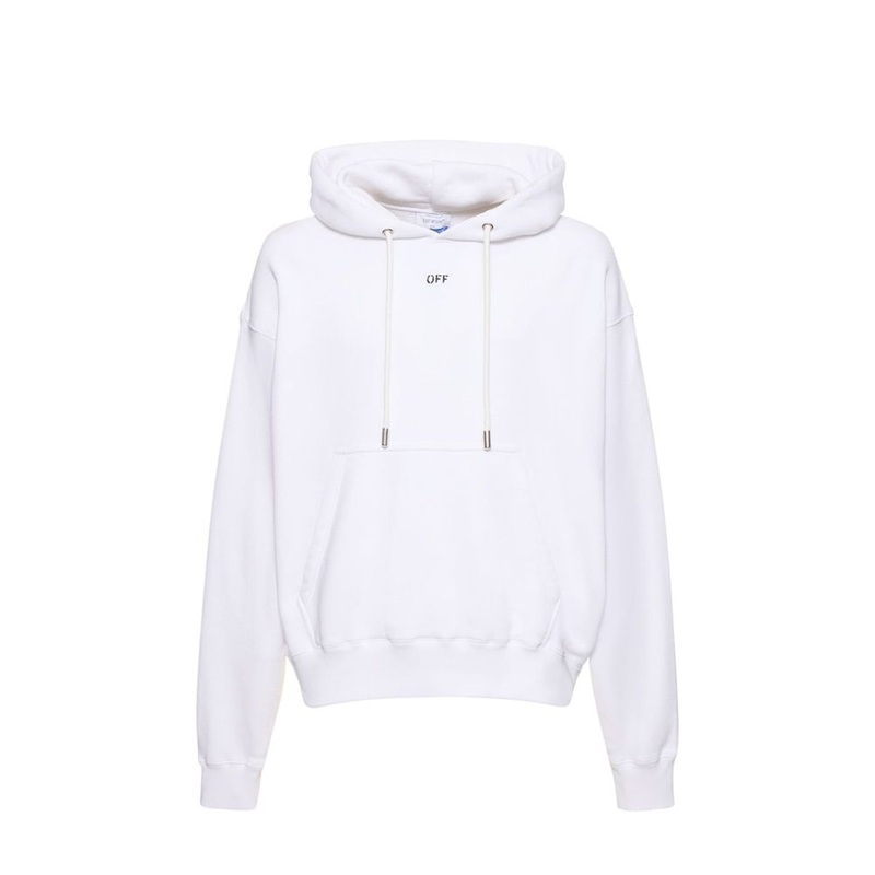 Description: Composition: 100% Cotton Long sleeves Drawstring hood Kangaroo pocket Dropped shoulders Boxy fit Machine wash (delicate) Ribbed hem and cuffs Front off stamp print Made in Italy Gender: MEN Size & Fit:Model wears size SModelHeight 190 cmChest