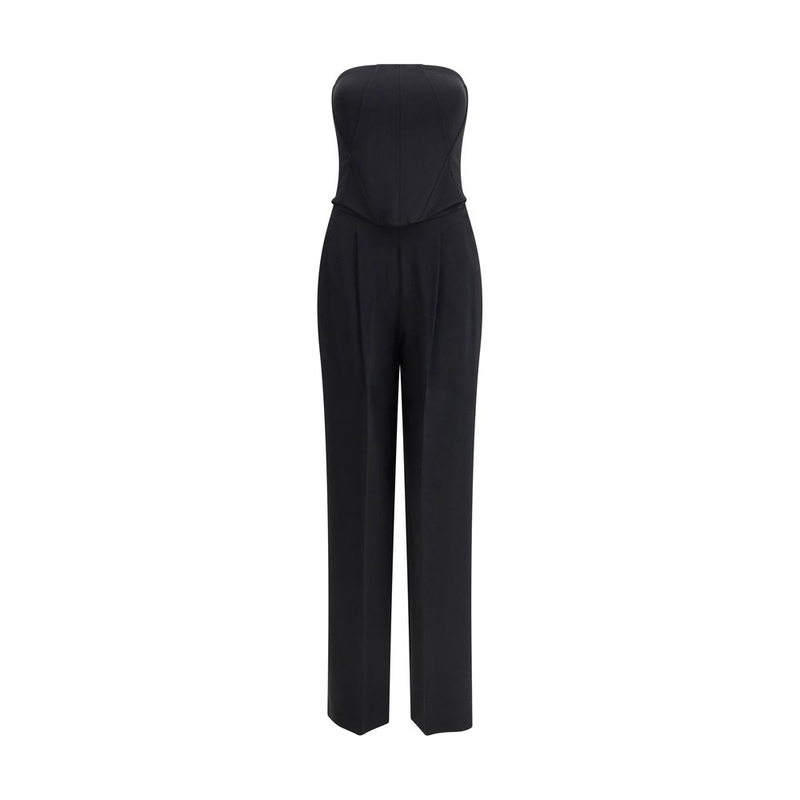 Pinkos Jumpsuit is a sleek and modern garment featuring a shoulderless design that lends a touch of sensuality and sophistication. The back zipper closure ensures a perfect fit, while the palazzo pants create a flowing and sophisticated silhouette. The two