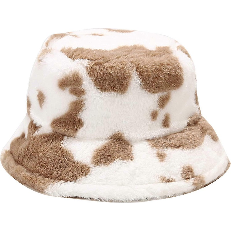 Winter Faux Fur Bucket Hat Fluffy Warm Hat for Women Men Cow Print Khaki – | Fruugo SG